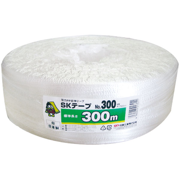 【規格内容】長さ300m巻【引張強度】1,254N(128kgf)【材質】PP(ポリプロピレン)【補足2】使い捨て【色】白【柄】柄無【キーワード】結束ヒモ、文具用品、店舗用品、ビニールひも、荷造りひも【商品特徴】いろんなものの結束に使える万能ひも。やわらかくて結びやすいひもです。耐野菜・果物・古紙・材木等の結束に適しています。引っ越しの際の荷物の結束に便利です。軽いので作業能率をアップさせてくれます。水にも強く、強度が変わりません。