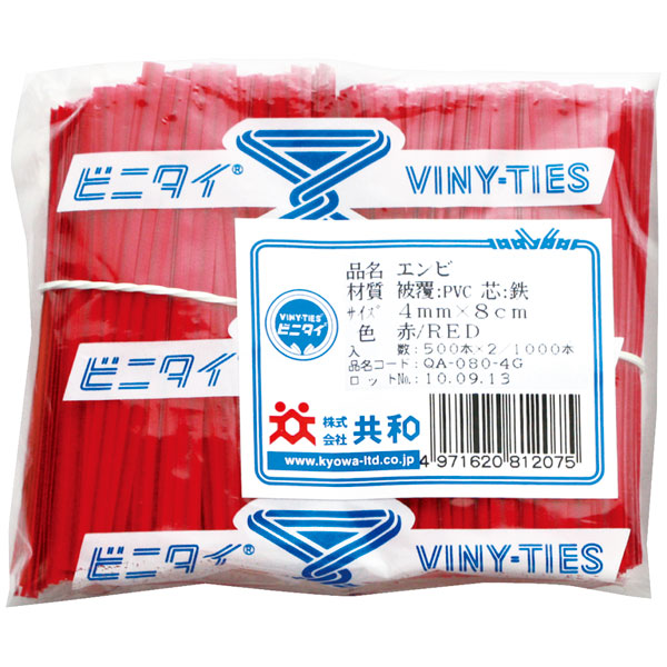 業務用食材 TOP ≫ パン・菓子包装 ≫ ラッピング ≫ ビニタイ 8cm 赤 1000本入 1袋 Y008226