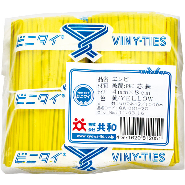 ビニタイ 8cm 黄 1000本入 1袋 Y008229
