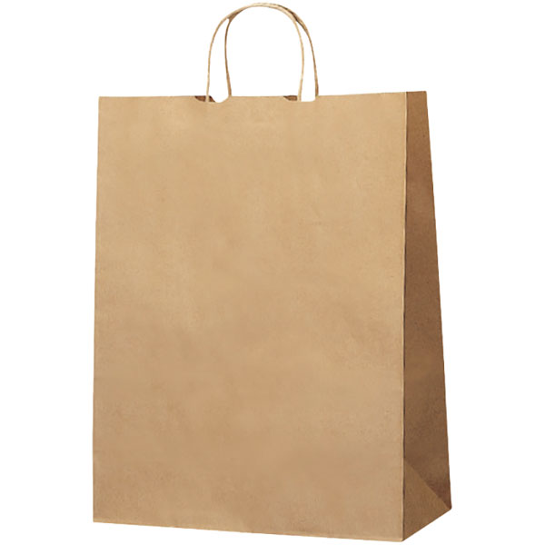 【規格内容】幅340×マチ150×高さ450mm【材質】未晒クラフト紙100g/m平方メートル、丸紐【補足2】使い捨て【色】茶【柄】柄無【キーワード】手提げ紙袋、洋菓子店向け、パン屋さん向け、ベーカリー、雑貨店向け、店舗用品【商品特徴】使いやすい定番サイズの手提袋です。