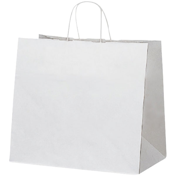 【規格内容】幅350×マチ220×高さ320mm【形状】マチ広タイプ【材質】片艶クラフト紙120g/m平方メートル、丸紐【補足2】使い捨て【色】白【柄】柄無【キーワード】手提げ紙袋、店舗用品【商品特徴】マチが広いタイプの手提袋。厚みのあるものや横にできないものも楽々入ります。