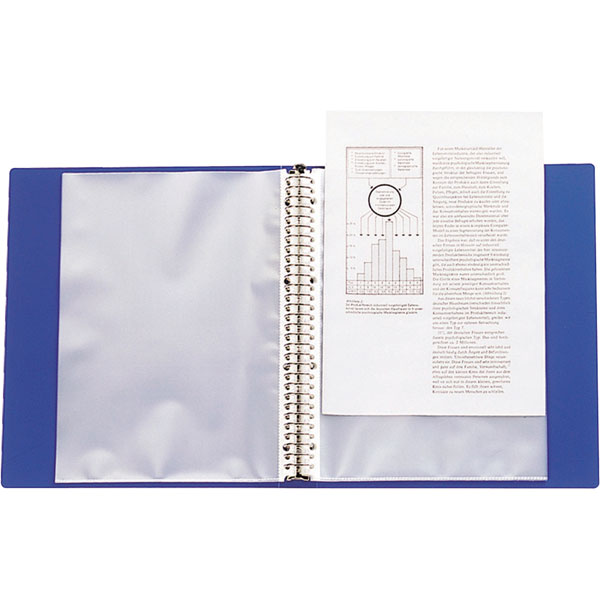【規格内容】幅265×長さ314×背幅35mm【材質】PP(ポリプロピレン)、スチール【補足2】再利用【色】青【柄】柄無【キーワード】文具用品、オフィス用品【商品特徴】ポケットが落ちにくいロック式金具を使用。ポケット25枚付。ポケット最大収容枚数:約80枚