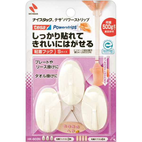 ナイスタックテサ 粘着フックS (3個入) HK-S03N 白 1袋 Y008699