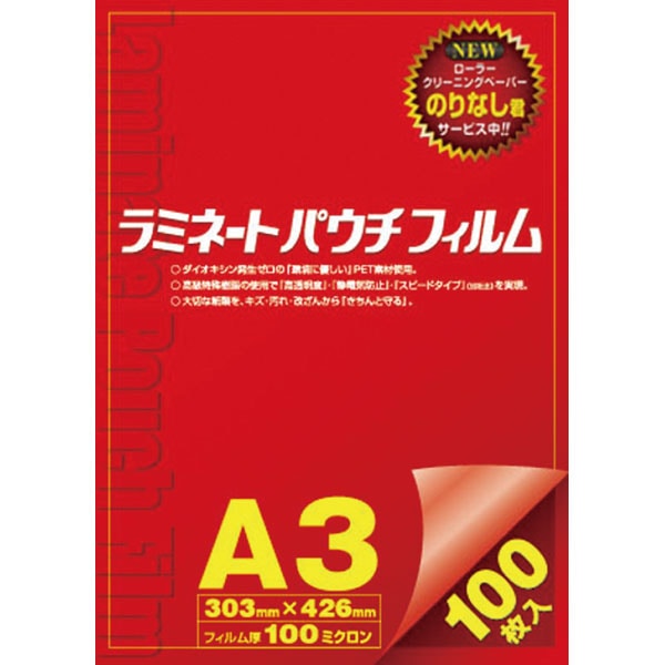 業務用食材 TOP ≫ 卓上用品 ≫ 文具・サインボード ≫ ラミネートパウチフィルム A3 100枚 Y008707