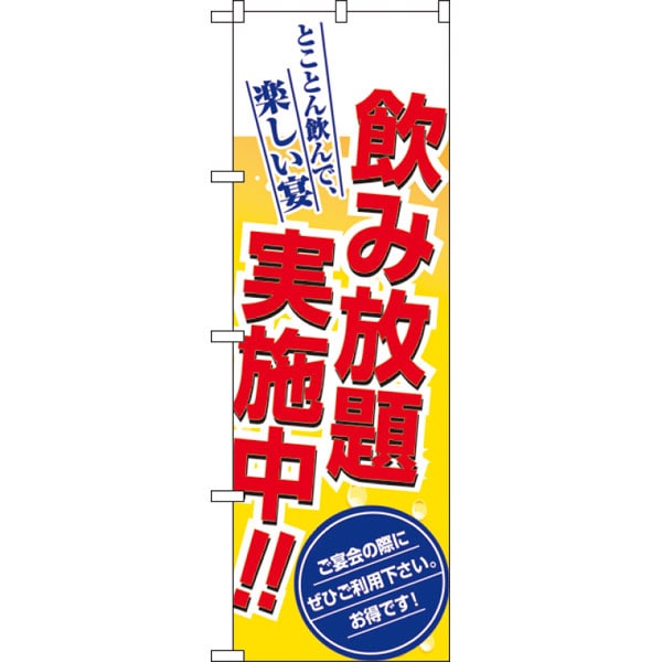 業務用食材 TOP ≫ 販促用品 ≫ のぼり ≫ のぼり 8196 飲み放題実施中!! 1枚 Y009078