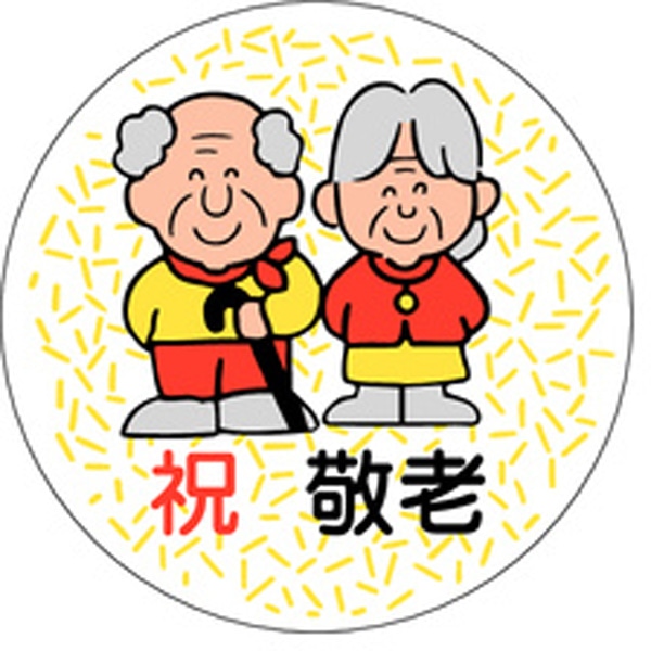 ■【規格内容】直径Φ45mm【補足2】使い捨て【柄】柄付【季節】11月【イベント・行事】敬老の日【キーワード】おじいちゃん、おばあちゃん、食品シール、食品ラベル、販促シール、ステッカー