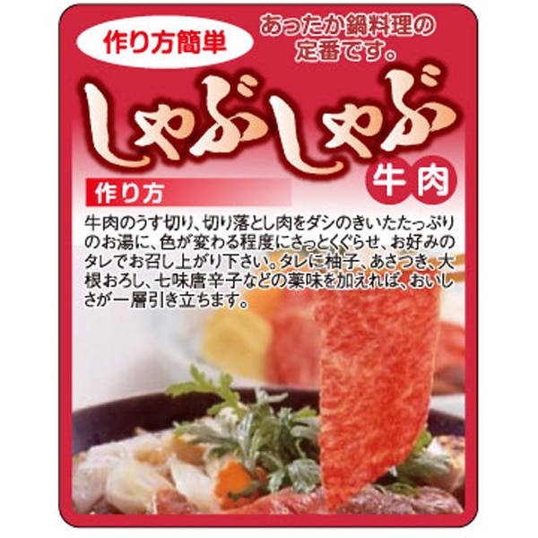 業務用食材 TOP ≫ ラベル・シール ≫ 惣菜 ≫ F-1034 しゃぶしゃぶ牛肉 1000枚 Y010685