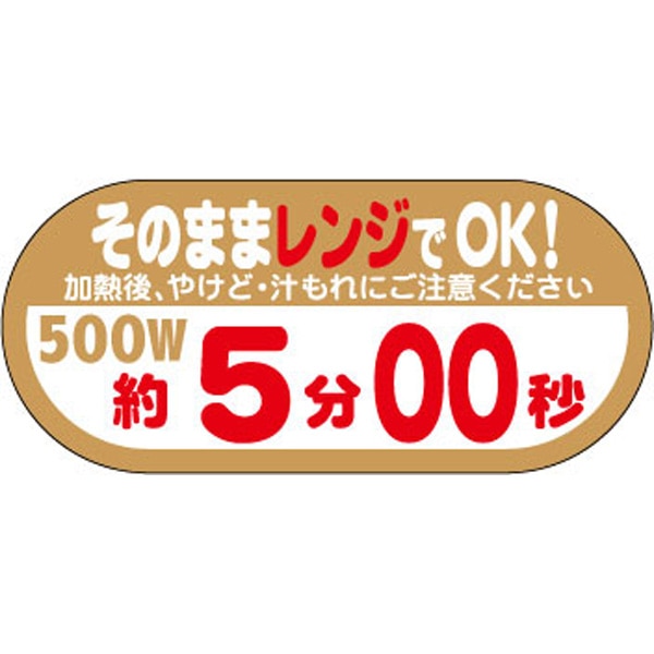 業務用食材 TOP ≫ ラベル・シール ≫ 惣菜 ≫ S-646 そのままレンジでOK!500W 約5分00秒 300枚 Y010736