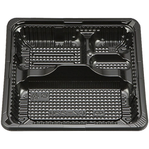 業務用食材 TOP ≫ 消耗品 ≫ 弁当・テイクアウト容器 ≫ 仕切り付き弁当容器 ≫ CZ-220 BS黒本体(N) 50枚 Y012023