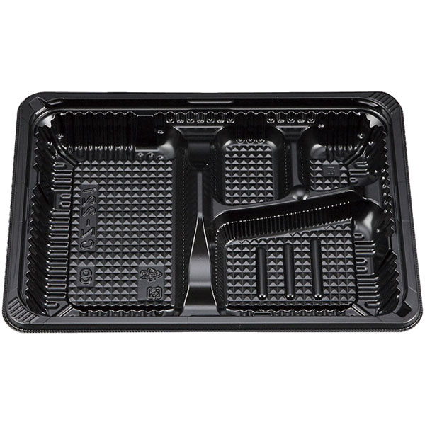 業務用食材 TOP ≫ 消耗品 ≫ 弁当・テイクアウト容器 ≫ 仕切り付き弁当容器 ≫ CZ-221 BS黒本体(N) 50枚 Y012024