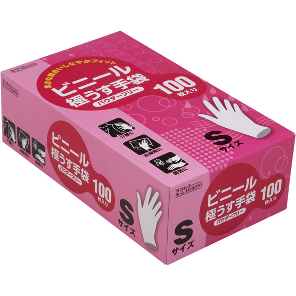 ビニール極うす手袋 粉無 S 半透明 100枚入 1箱 Y012052