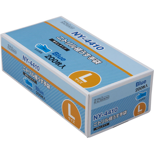 ニトリル極うす手袋 NY4410 粉無 L ブルー 200枚入 1箱 Y012306