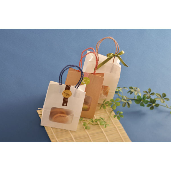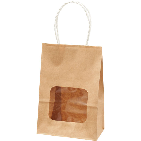 業務用食材 TOP ≫ パン・菓子包装 ≫ 手提げ袋 ≫ ウィンドウミニバッグ 茶無地 白 25枚 Y012909