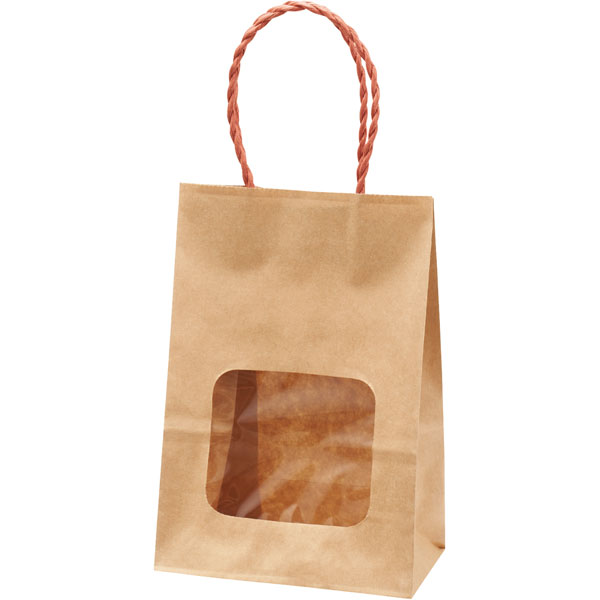 【規格内容】幅110×マチ60×高さ160mm【材質】未晒クラフト80g【補足2】使い捨て【色】茶赤【柄】柄無【キーワード】窓付き手提げ紙袋、マチあり、見せるラッピング、クラフト袋、ラッピング、手提袋、紙袋、個包装用袋、包材、クッキー、マドレーヌ、フィナンシェ、マカロン、角底袋【商品特徴】窓からのぞくお菓子がかわいい手提型の紙袋です。