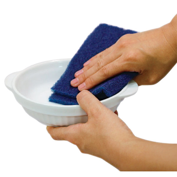 ■【規格内容】幅150×長さ230mm【形状】中目【材質】NY(ナイロン)繊維(樹脂研磨粒子)【色】青【商品特徴】厨房機器の洗浄に、「切って」、「丸めて」、「たたんで」使えるシート状のたわしです。金属よりもやわらかい研磨粒子を含んでいるので、器材表面を傷つけずに、汚れだけをきれいに落とすことができます。表面にこびりついたベタベタ汚れの除去に効果を発揮します。