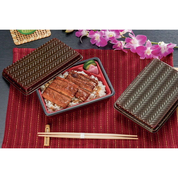 業務用食材 TOP ≫ 消耗品 ≫ 弁当・テイクアウト容器 ≫ 仕切り付き弁当容器 ≫ アジロ弁当 中仕切2 黒内赤 50枚 Y013495