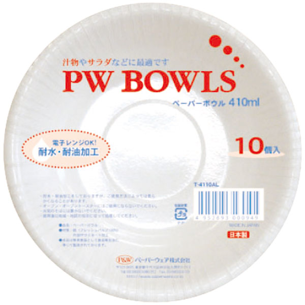 T-4110AL PWボウルエニー410ml 10個入 1袋 Y013574