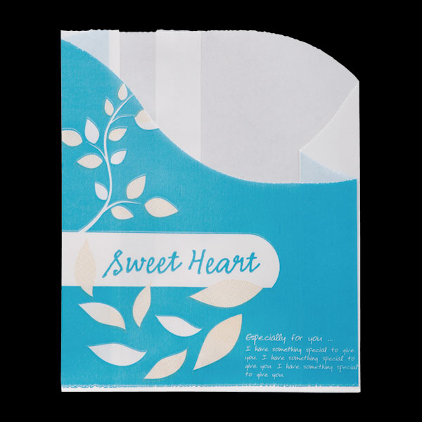 業務用食材 TOP ≫ パン・菓子包装 ≫ パン袋 ≫ 8981 スイートハートリーフ柄(ブルー) 100枚 Y013711