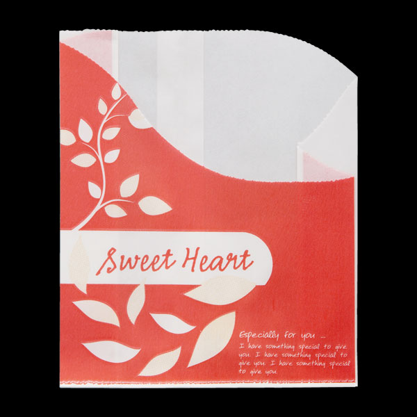 業務用食材 TOP ≫ パン・菓子包装 ≫ パン袋 ≫ 8980 スイートハートリーフ柄(レッド) 100枚 Y013712