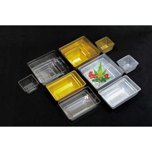 業務用食材 TOP ≫ 消耗品 ≫ 弁当・テイクアウト容器 ≫ バラン・カップ ≫ おせちトレー S-80L(銀) 100枚 Y014106