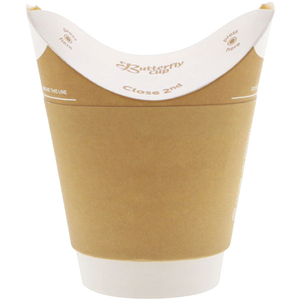 業務用食材 TOP ≫ 消耗品 ≫ 弁当・テイクアウト容器 ≫ クリーンカップ、かき氷 ≫ バタフライカップ 8オンスホットダブル クラフト【エ】 25個 Y014564
