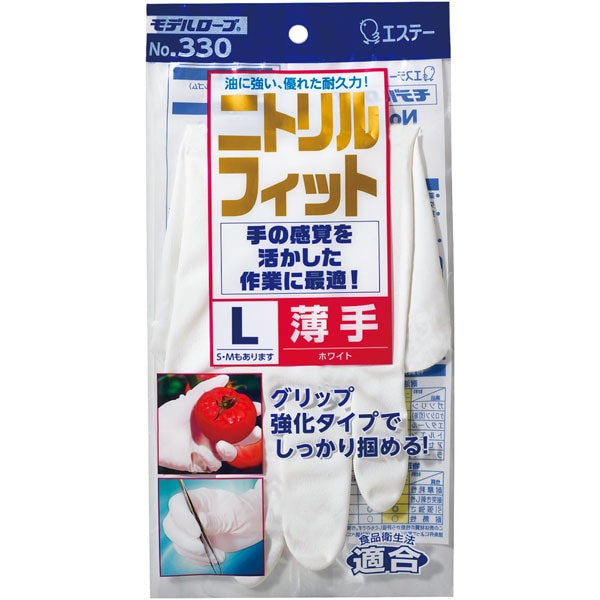 #330 ニトリルフィット薄手ホワイト L 1組 Y014673