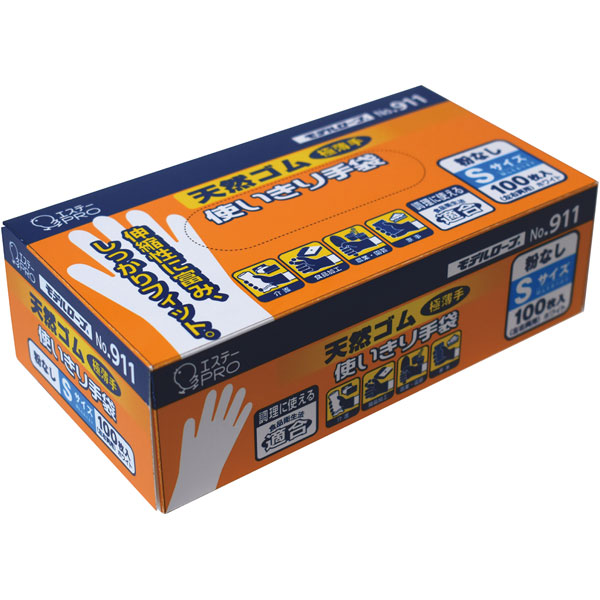 NO.911天然ゴム使い切り手袋 Sサイズ 粉無 100枚入 1箱 Y014783