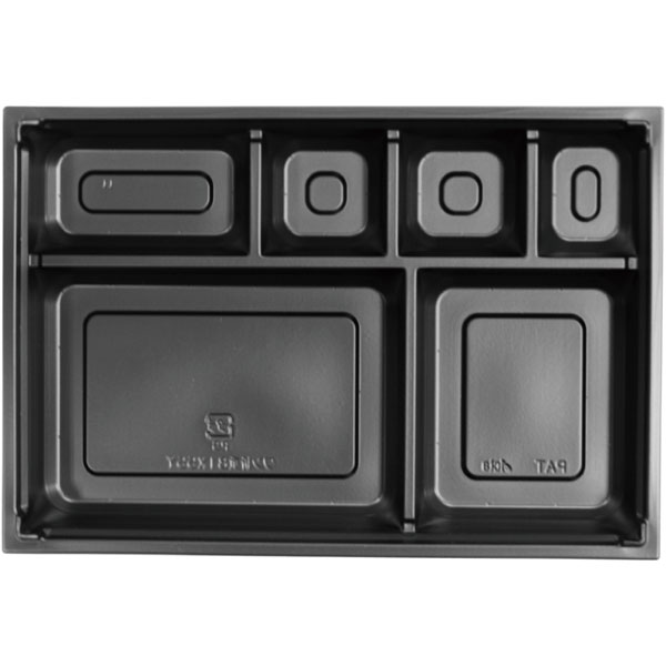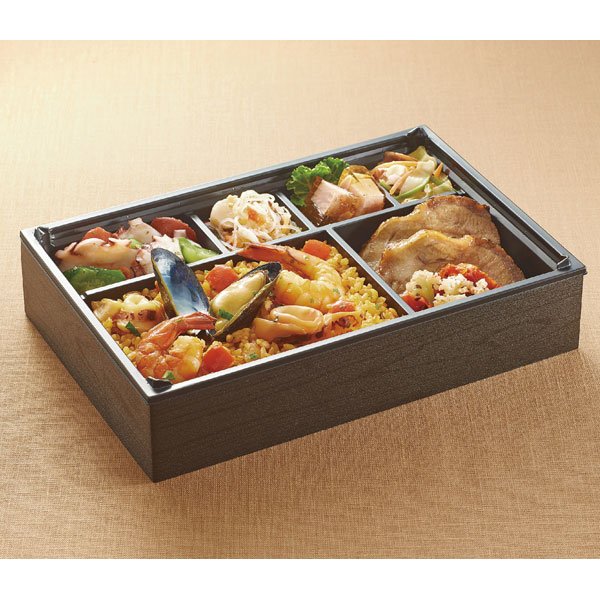 【規格内容】幅243×奥行166×高さ45mm【容量】ご飯約190g【耐冷耐熱温度】80℃【販売形態】中仕切のみ【材質】PS、PP(ポリプロピレン)【補足2】使い捨て【色】黒【柄】柄無【キーワード】高級弁当、会席料理【商品特徴】伝統的な木折の美しさを表現した重厚感のある折箱。高級弁当や会席料理に。ワンタッチでセットのワン折に重ね機能を付加。縁+底+蓋をパーツ別にオーダーできるため多様なメニューに対応します。 ※縁・底・蓋それぞれパーツ別での納品となります。