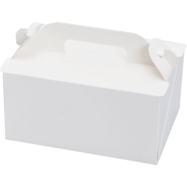■【規格内容】内寸:幅120×奥行90×高さ90mm【材質】紙【色】白【柄】柄無【号数】3号【号数】4号【高さ】100mm未満【形】長方形【キーワード】ケーキ箱、サービス箱、取っ手あり【商品特徴】ケーキの出し入れが簡単な、持ち手付きサイドオープンタイプ。組み立て簡単。サイドや蓋の沈み込みを防ぐ工夫で商品をしっかり守ります。サイドオープンタイプ