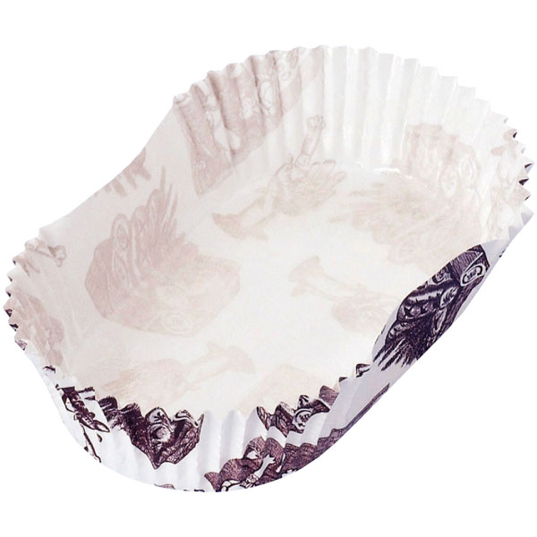 業務用食材 TOP ≫ パン・菓子包装 ≫ ベーキングカップ ≫ 86330 ラミカップ 小判型浅 パン柄 250枚入 1本 Y015150