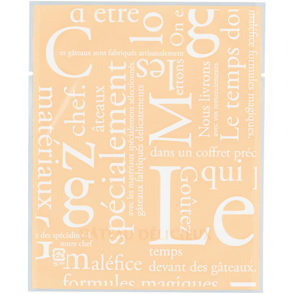 【規格内容】幅130×長さ160mm【厚み】0.06mm【形状】カマス袋【材質】KOP20/LLD40【加工】Uノッチ(左右)付、縦5mmシール【補足1】脱酸素剤対応、乾燥剤対応、ノッチ付【補足2】使い捨て【色】透明茶【柄】柄付【キーワード】菓子袋、ガスバリア袋、焼き菓子袋、焼き菓子用袋、ラッピング、パッケージ、個包装用袋、包材【用途】マドレーヌ、クッキー、パウンドケーキ、焼ドーナツ【商品特徴】洋菓子にぴったりな柄を豊富に揃えました。
