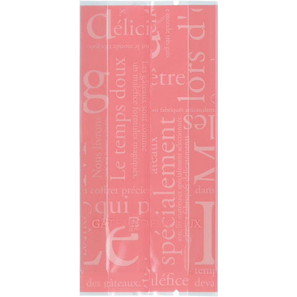 【規格内容】仕上幅70(マチ30)×長さ150mm【厚み】0.065mm【形状】合掌ガゼット袋【材質】KOP20/LD15/LLD30【加工】涙ノッチ(上下)付、8mm×8mmシール【補足1】脱酸素剤対応、乾燥剤対応、ノッチ付【補足2】使い捨て【色】透明桃【柄】柄付【キーワード】菓子袋、ガスバリア袋、焼き菓子袋、焼き菓子用袋、ラッピング、パッケージ、個包装用袋、包材【用途】タルト、マドレーヌ、フィナンシェ【商品特徴】厚みのあるお菓子を、ぴったりと包みます。