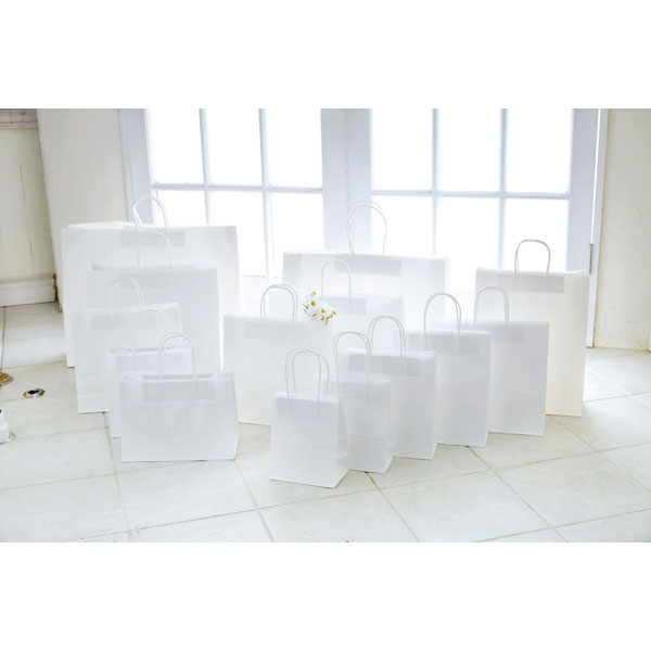 ■【規格内容】幅220×マチ130×高さ255mm【厚み】80G/m平方メートル【材質】晒クラフト紙80G/m平方メートル【商品特徴】様々な用途にお使い頂ける無地手提袋です。在庫が嵩張らない平紐タイプ。【色】白【柄】柄無