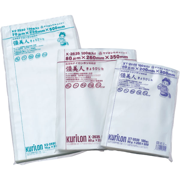 【規格内容】幅240×長さ300mm【厚み】0.07mm【耐冷耐熱温度】−40℃~100℃【材質】NY/NY/接/PE/PE【補足1】真空袋_Vノッチ有、真空袋_三方袋【商品特徴】美しい光沢感と透明性を持つ、しなやかで使いやすい真空袋です。豊富なサイズで温度帯を選ばず幅広くお使いいただけます。真空・脱気・冷凍・ボイルが必要なアイテムを幅広くカバー。独自技術の低カールで自動給袋適性も良好です。・内容物をつぶさないしなやかな柔軟性で真空包装がキレイに仕上がります。・透明感のあるフィルムが内容物の魅力を引き出しディスプレイ効果抜群です。・−40℃冷凍から100℃30分ボイルまで一枚で対応。・開封に便利なVノッチ付き。・外袋はJANバーコード付きです。※脱酸素剤をご使用の際はハイバリア彊美人をお選びください。※レトルト包装用途にはご利用いただけません。用途:ハム、ざる豆腐、明太子、ソーセージ、うどん、漬け物、カット野菜、豚角煮、生麺、魚の切り身、イカめし、ソース、キムチ、クリームチーズ、ちくわ、厚焼き玉子、はんぺん、あさり、佃煮、こんにゃく、サバ味噌煮等【色】透明【柄】柄無 ※脱酸素剤をご使用の際はハイバリア彊美人をお選びください。※レトルト包装用途にはご利用いただけません。