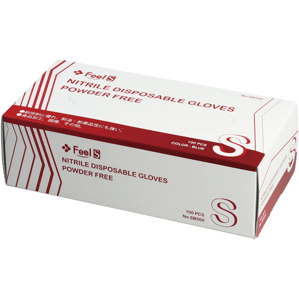 SB500 ニトリルグローブ粉無ブルー S 100枚 Y018305