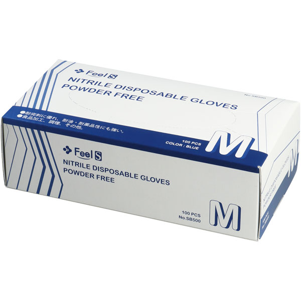 SB500 ニトリルグローブ粉無ブルー M 100枚 Y018306