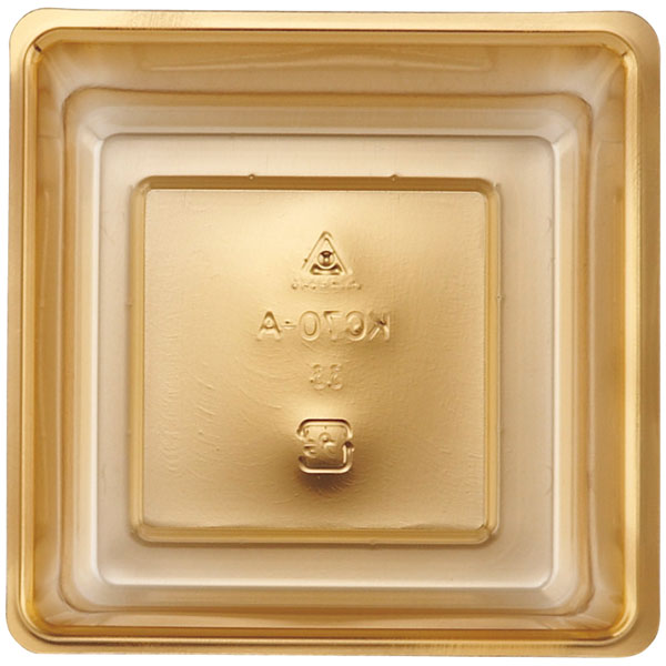 【規格内容】幅97×奥行97×高さ30mm【色】金【柄】柄無【販売形態】中仕切のみ【耐冷耐熱温度】60℃【材質】PET【商品特徴】おもてなし膳と組み合わせて使用するカップです。輝く金色でお料理がより華やぎます。 ※レンジ不可
