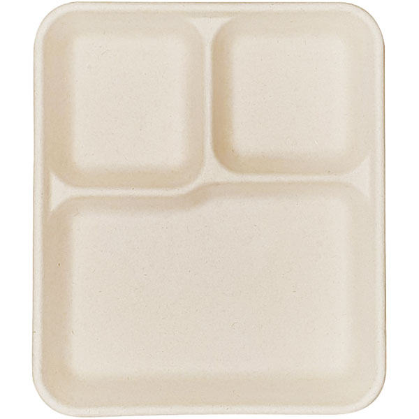 業務用食材 TOP ≫ 消耗品 ≫ 弁当・テイクアウト容器 ≫ 丸皿・お寿司皿 ≫ ムギ&タケトレイ 3PARTITION【エ】 50枚 Y019101