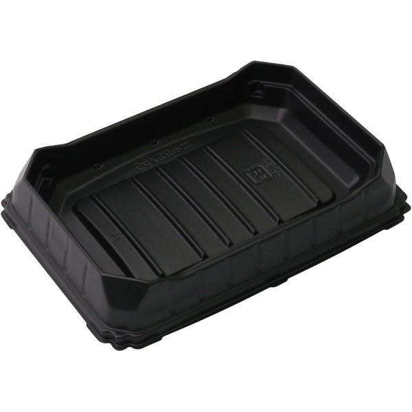 ■【規格内容】幅157×奥行109×高さ26mm【色】黒【柄】柄無【販売形態】中皿のみ【材質】PA【商品特徴】お客様の満足感と内容量の最適化を両立させた感覚に訴求する新たな折箱です。 ※縁・底・蓋それぞれパーツ別での納品となります。