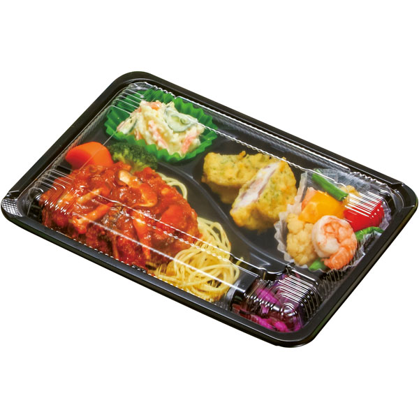 業務用食材 TOP ≫ 消耗品 ≫ 弁当・テイクアウト容器 ≫ 仕切り付き弁当容器 ≫ TSR-23-17-1 本体:黒 50枚 Y019281