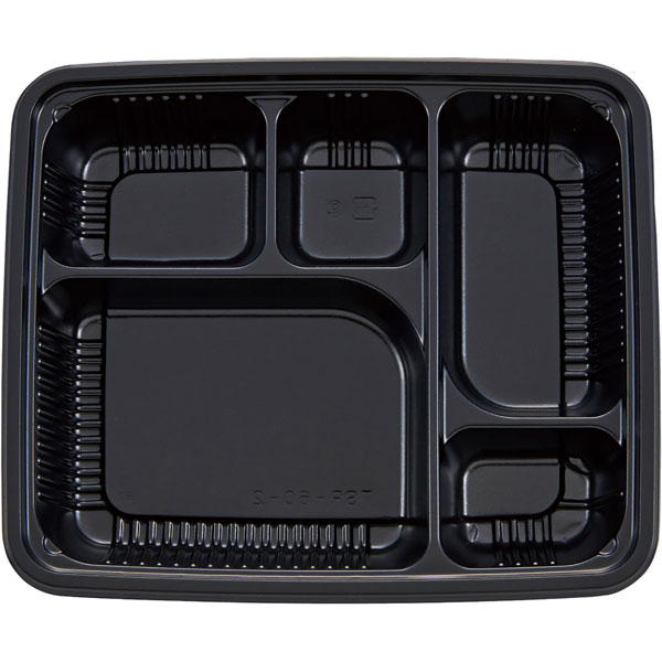 業務用食材 TOP ≫ 消耗品 ≫ 弁当・テイクアウト容器 ≫ 仕切り付き弁当容器 ≫ TSR-602 本体:黒 50枚 Y019295