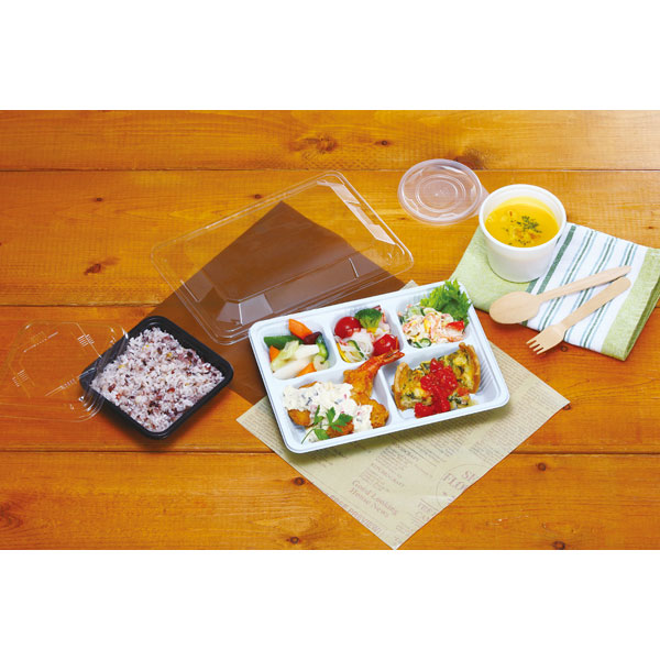 業務用食材 TOP ≫ 消耗品 ≫ 弁当・テイクアウト容器 ≫ 仕切り付き弁当容器 ≫ TSR-70-55-5 本体:白/黒 50枚 Y019306
