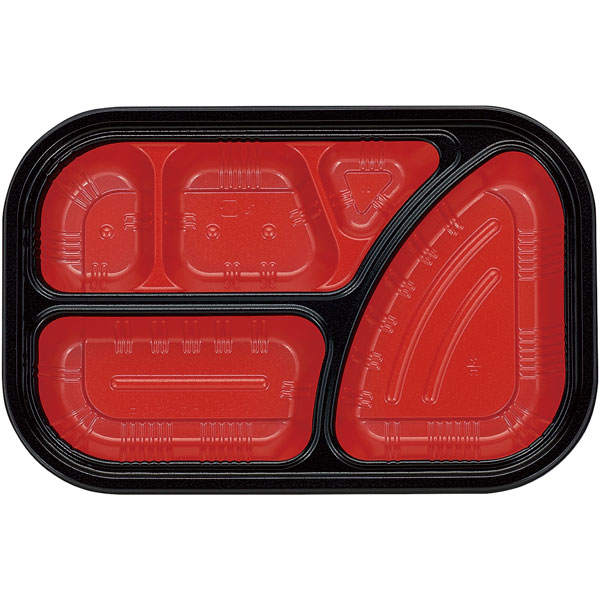 業務用食材 TOP ≫ 消耗品 ≫ 弁当・テイクアウト容器 ≫ 仕切り付き弁当容器 ≫ TSR-85-55B 本体:黒内赤 50枚 Y019322