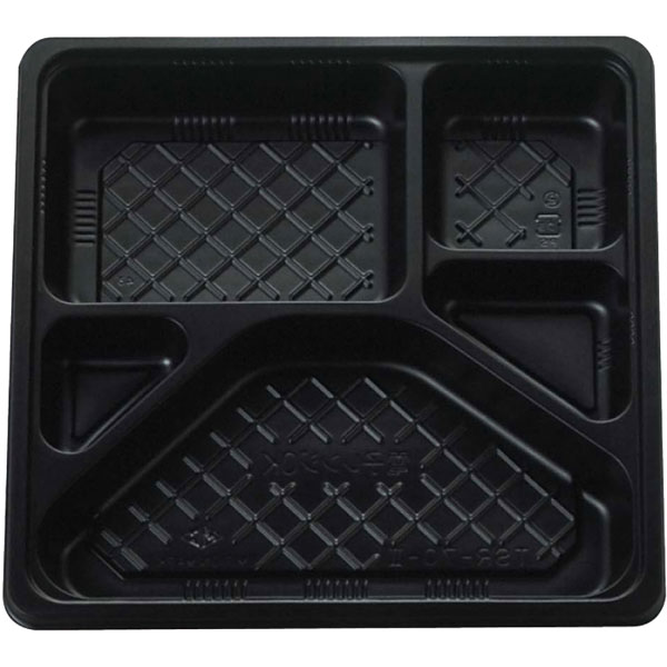 業務用食材 TOP ≫ 消耗品 ≫ 弁当・テイクアウト容器 ≫ 仕切り付き弁当容器 ≫ TSR-70-2 夢彩ごぜん 本体 黒 50枚 Y019346