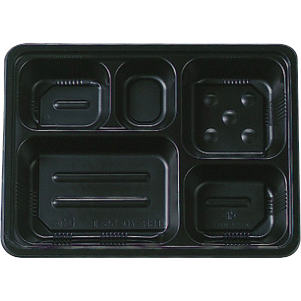 業務用食材 TOP ≫ 消耗品 ≫ 弁当・テイクアウト容器 ≫ 仕切り付き弁当容器 ≫ TSR-70-55-2夢彩ごぜん 本体黒 50枚 Y019351