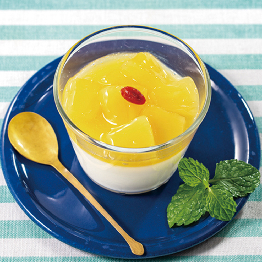 パインをたっぷり使用し、フレッシュ感と具材感にこだわったフルーツソースです。パインを51%(仕込時)使用しています。